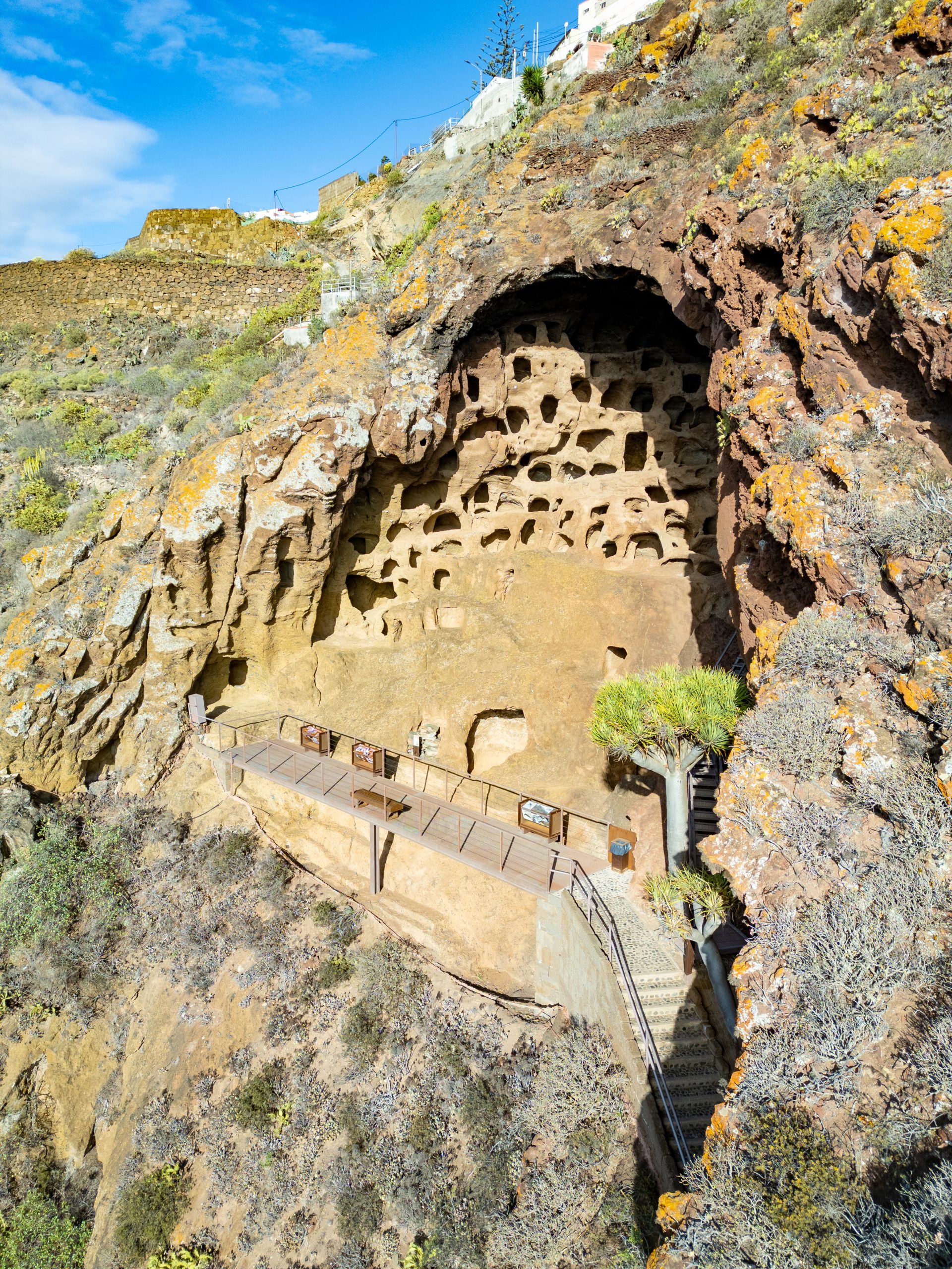 The Maspalomas Dunes, located in the municipality of San Bartolomé de Tirajana, are a protected natural area and Special Nature Reserve due to their unique dune ecosystem and the saltwater lagoon La Charca, home to migratory birds and endemic flora and fauna. The reserve, covering approximately 400 hectares, combines moving dunes, desert, and sea, creating a dynamic and ecologically valuable landscape. To preserve this environment, conservation projects such as "Masdunas" have been implemented to protect the natural habitat and ensure its survival for future generations